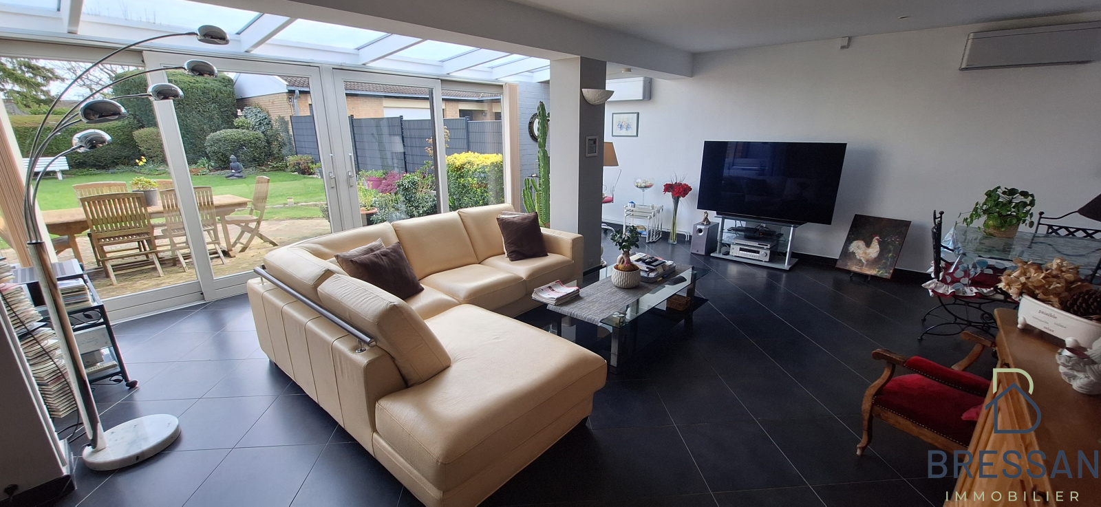 En enclusivité, maison de plain-pied d'environ 130m² habitables bâtie sur une parcelle de 522m².