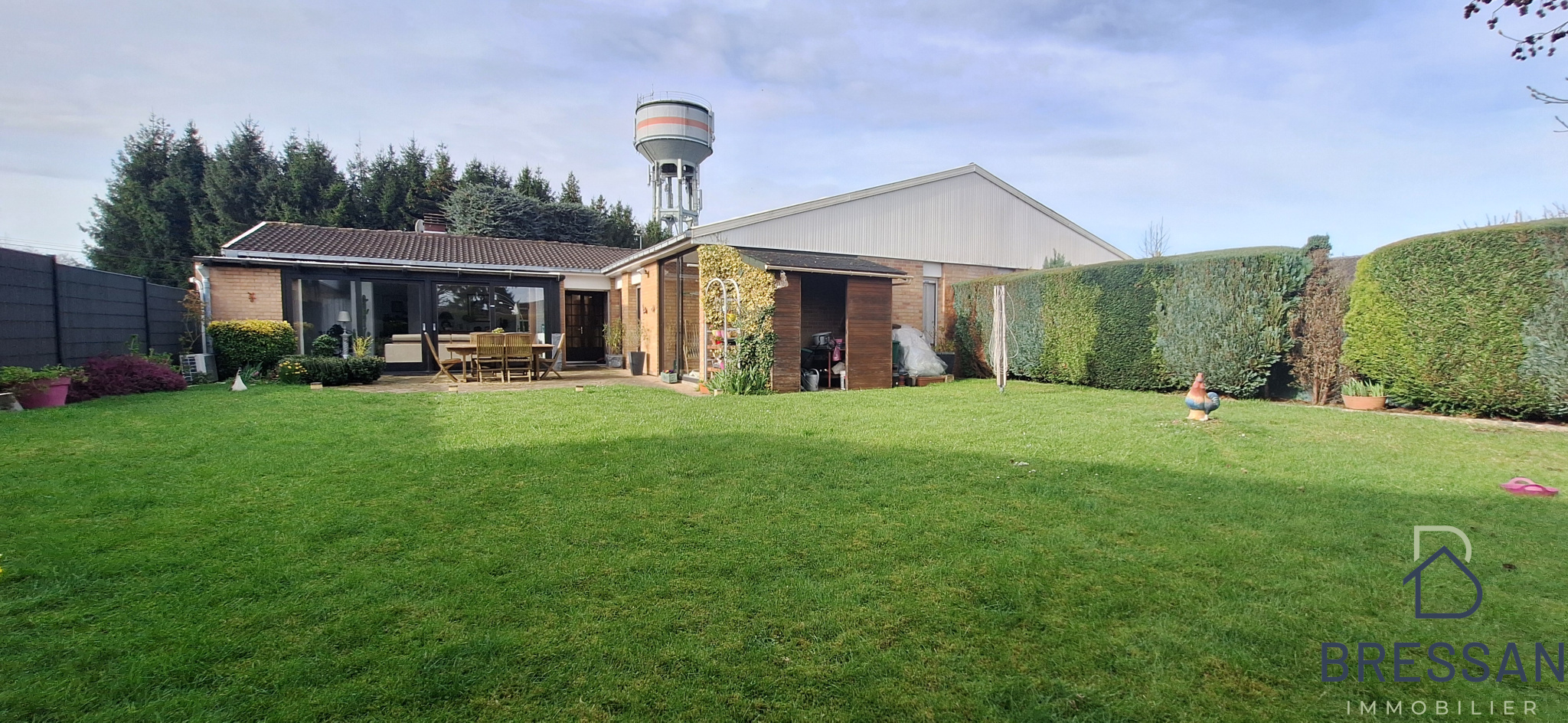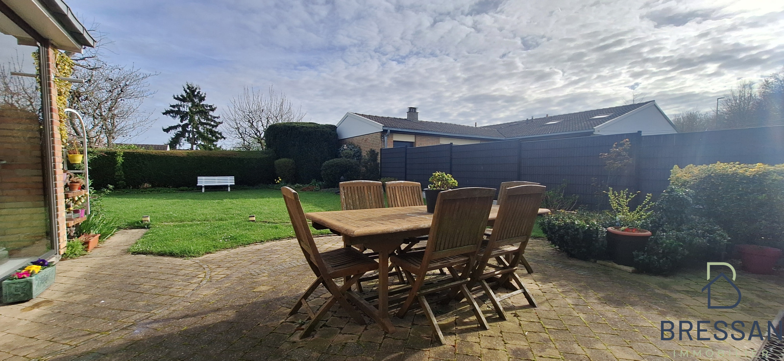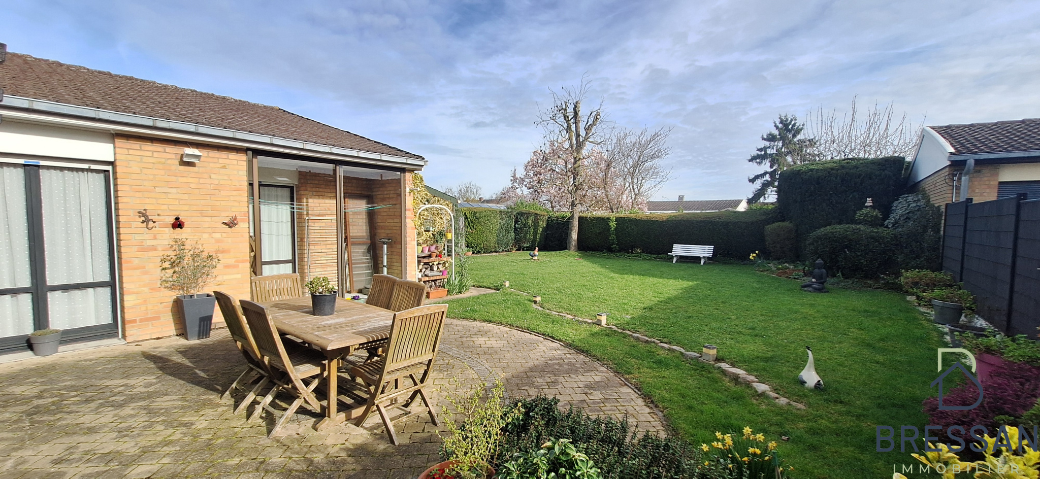 Jardin arboré sans vis à vis avec terrasse.