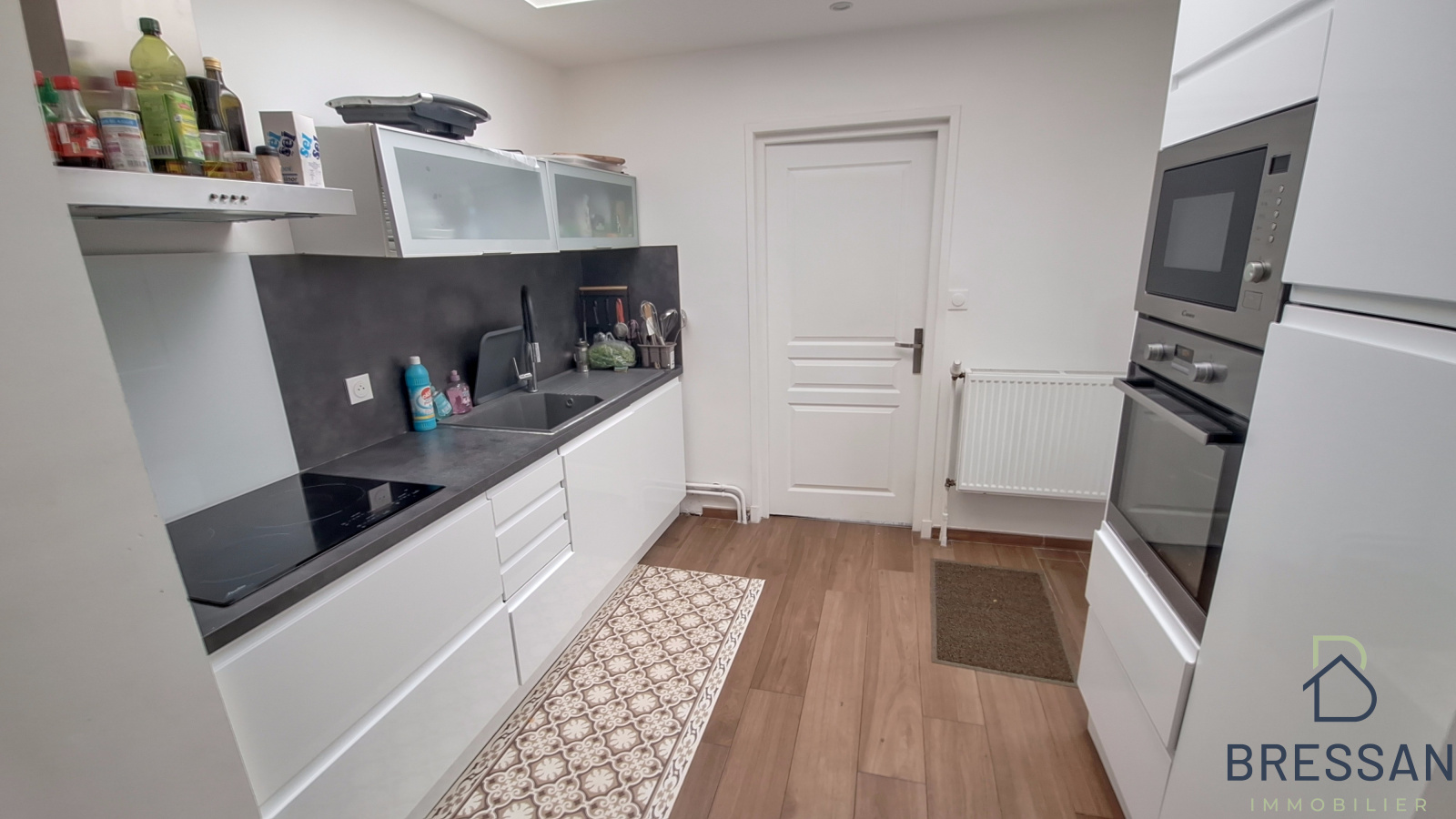 Hall d'entrée, Séjour lumineux donnant sur un agréable jardin, Grande cuisine équipée avec coin repas, Cellier (possibilité bureau). A l'étage, 3 chambres + salle de bains. Combles isolés. Sous-sol complet comprenant buanderie, chaufferie et grand garage ! Place de parking privée et jardin sans vis-àvis.