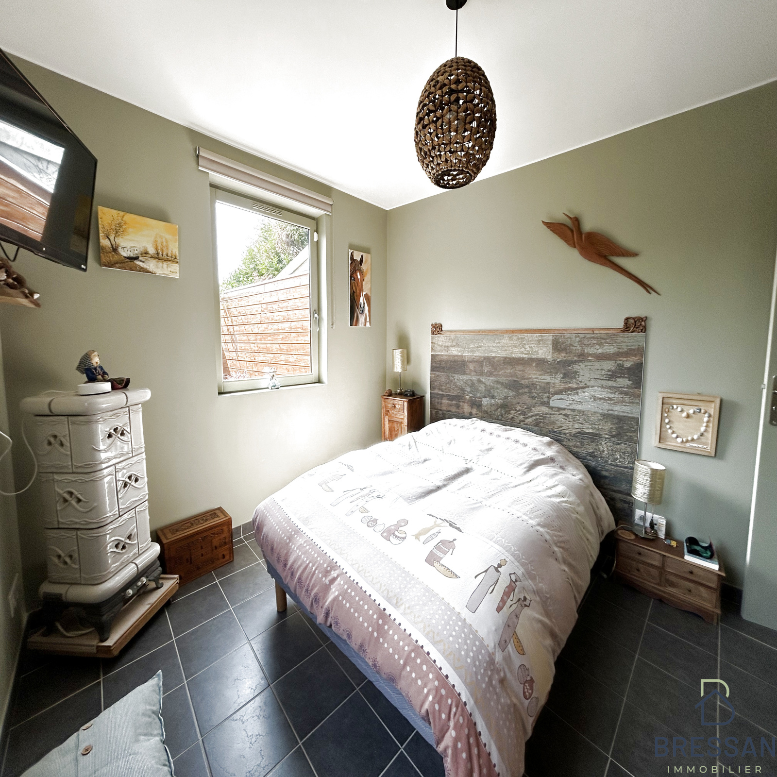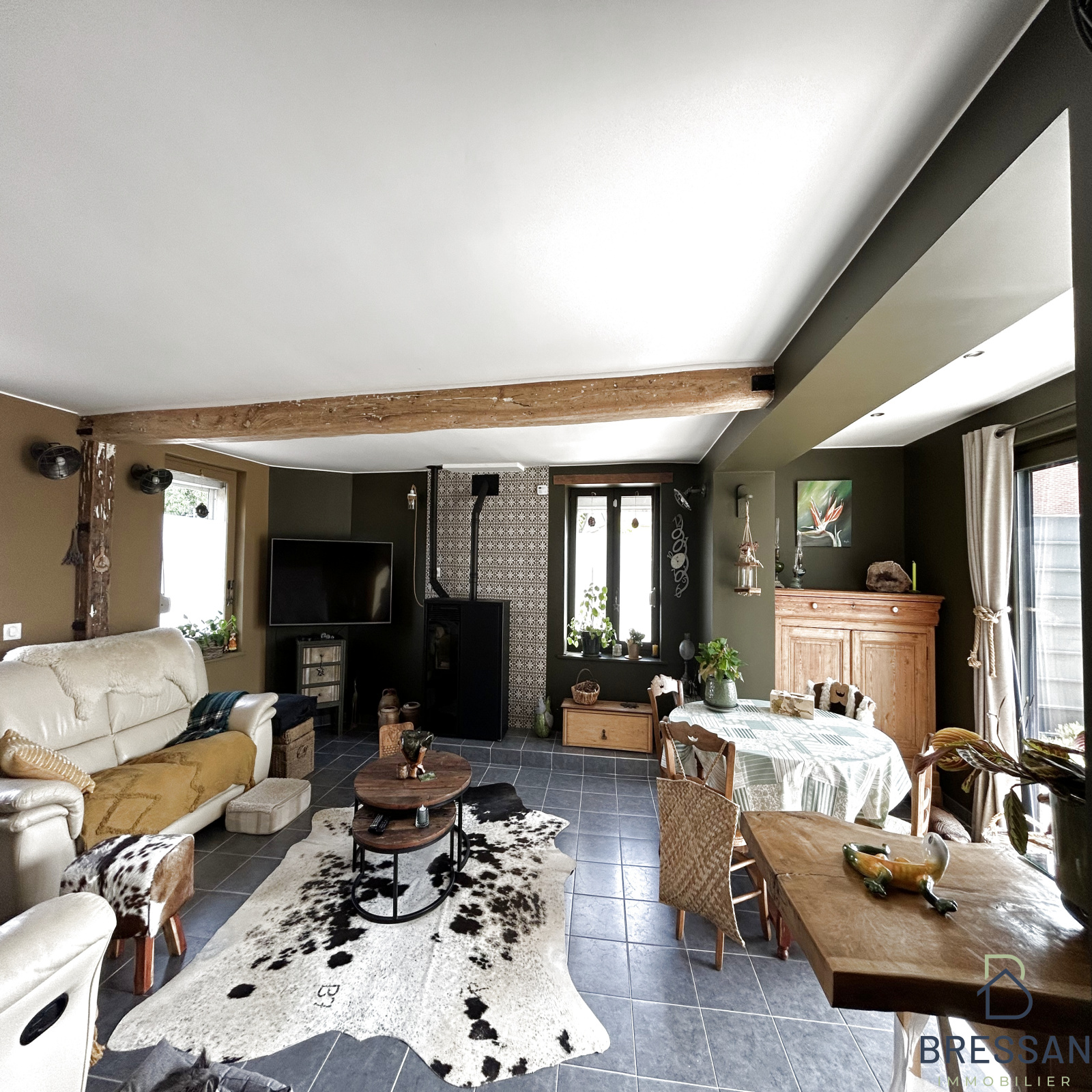 Hem secteur "Jardin des Perspectives" flamande semi-individuelle rénovée avec goût ! Entrée avec rangements, Séjour 40m² avec poêle à pellets, Cuisine ouverte équipée, 3 chambres dont 1 de plain-pied, 2 salles de bains, Mezzanine - bureau, Grand extérieur d'environ 60m² bien exposé. SUPERBE NOUVEAUTE ! RENOVATION DE QUALITE !