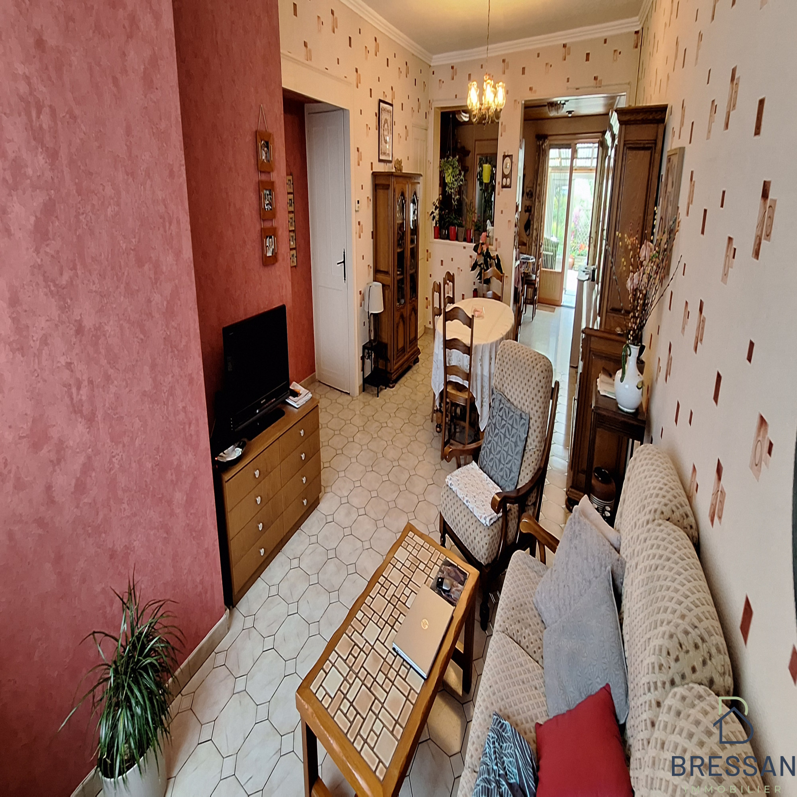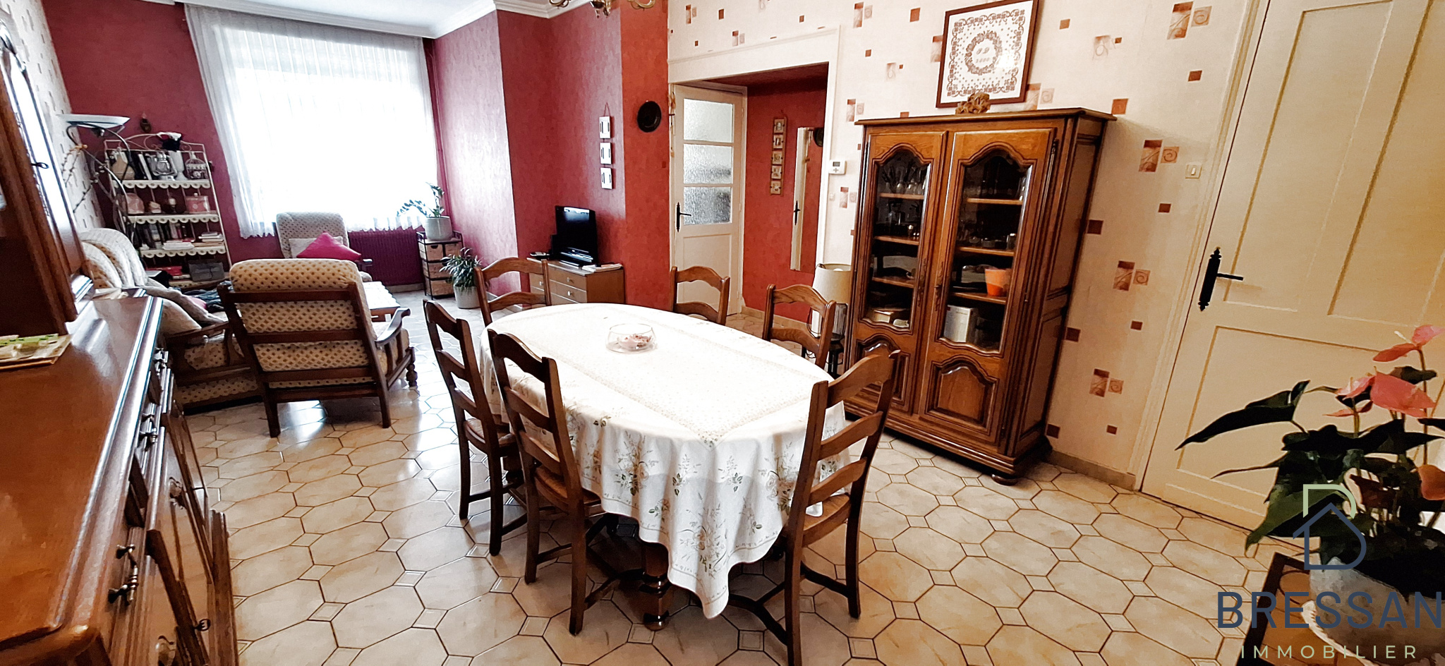 Maison de type 1930 parfaitement entretenue - Sas d'entrée - séjour 28m², grande cuisine équipée à moderniser avec coin repas, buanderie, salle de douche. A l'étage 3 chambres sur le même palier.