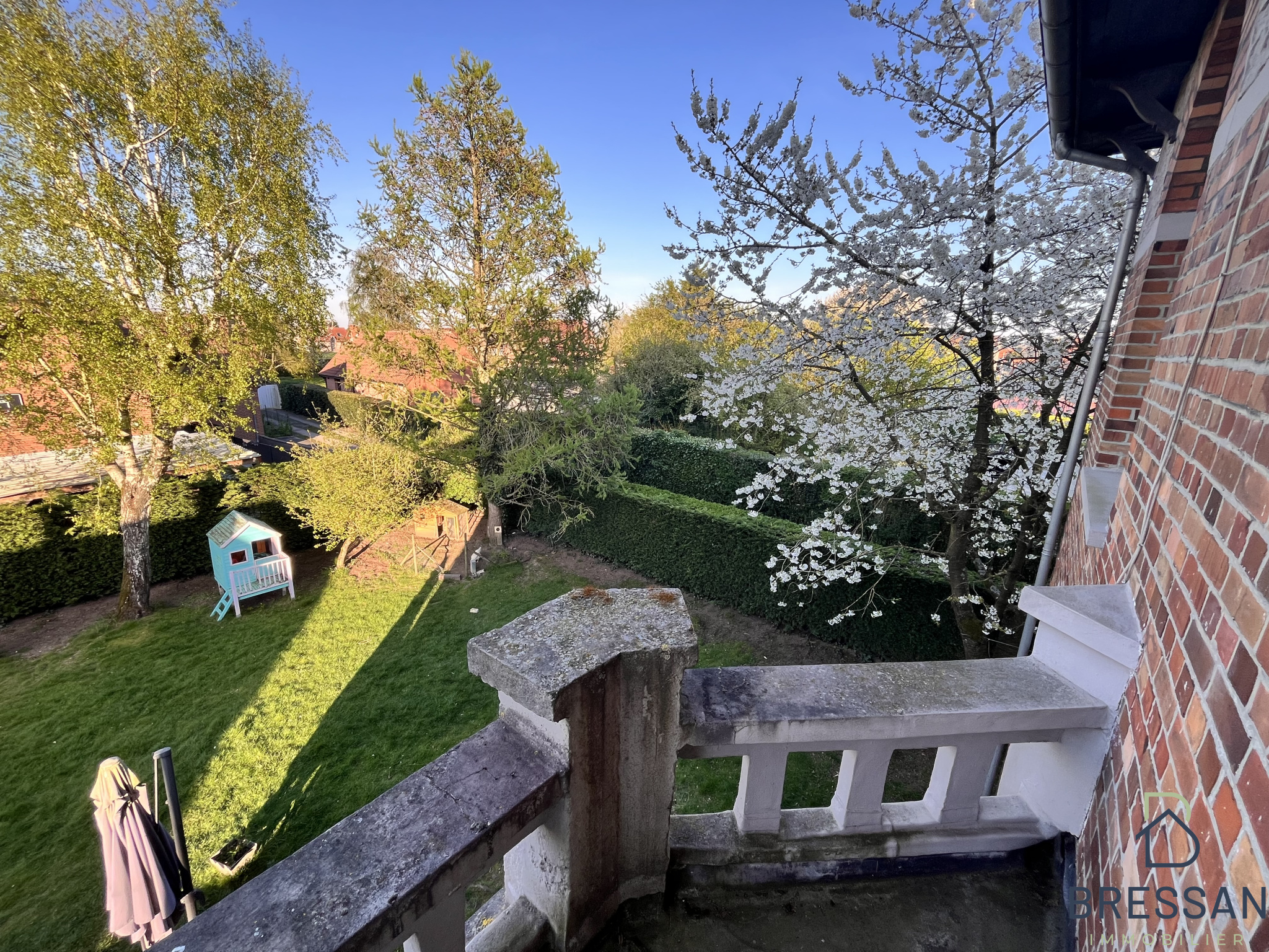 Au coeur de Sailly lez Lannoy, magnifique longère entièrement rénovée avec goût, érigée sur une parcelle de près de 1000m² - Belle entrée en pierre bleue - Séjour parqueté en L avec CFDB - Cuisine équipée avec coin repas - Cellier - Espace parental de plain pied avec dressing et salle de bain - Salle de jeux