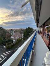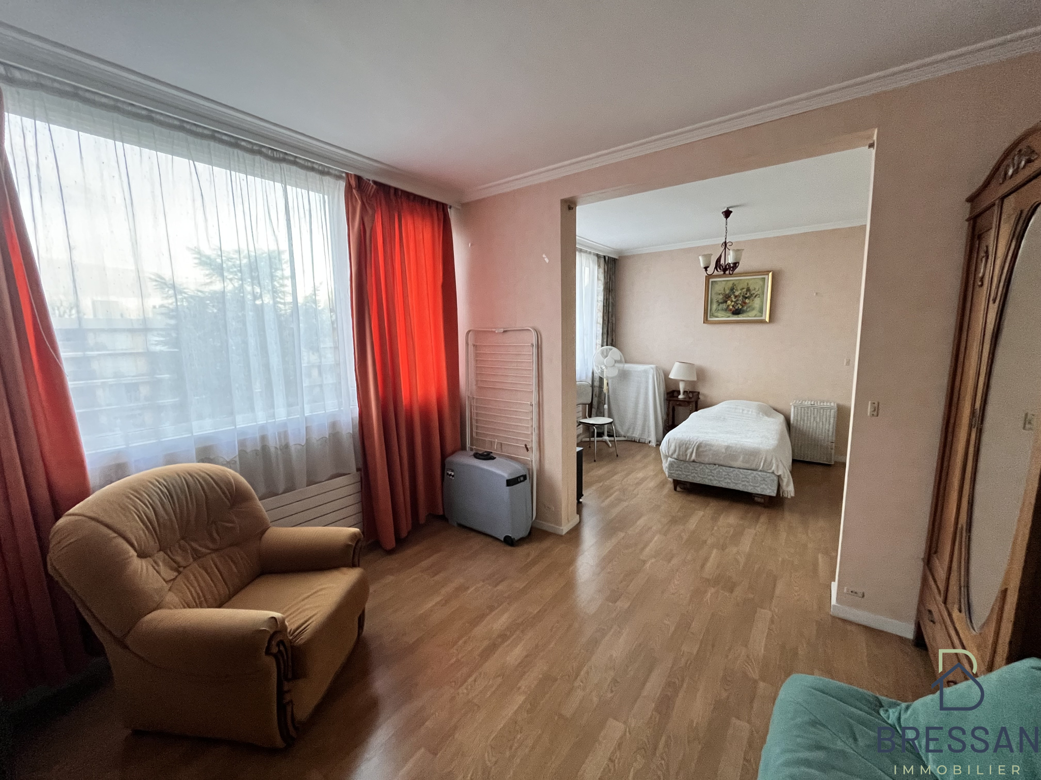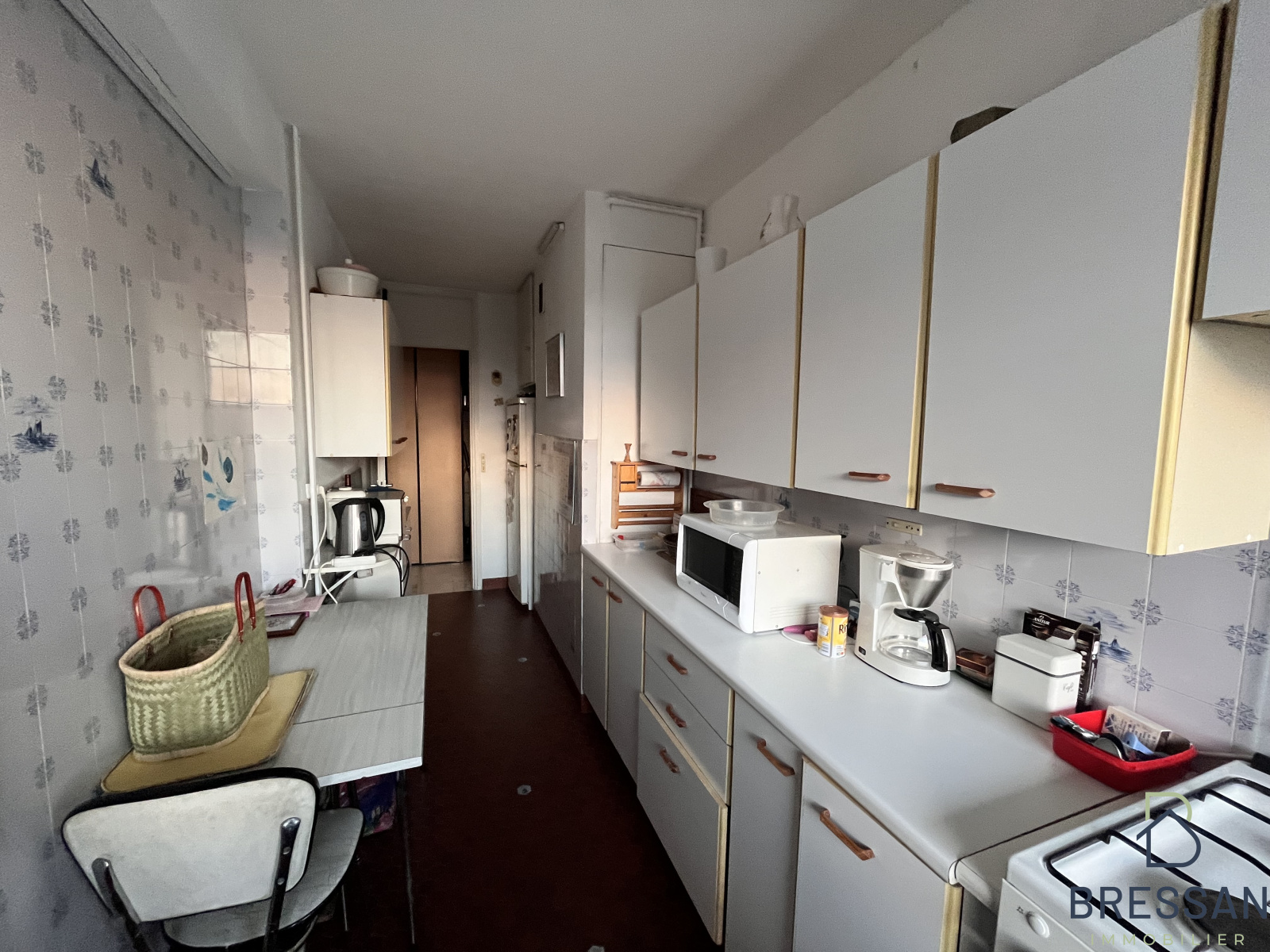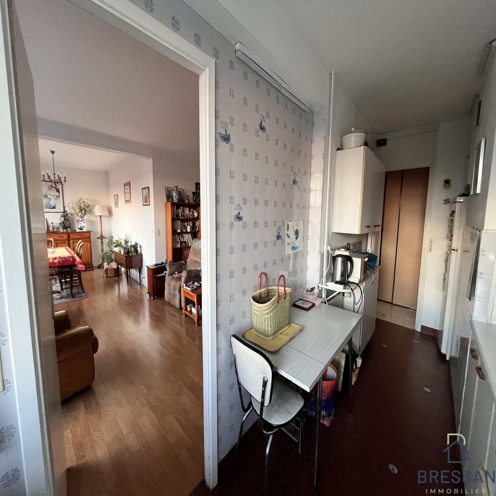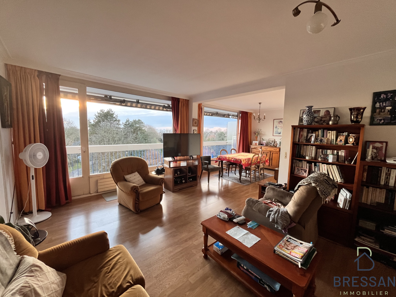 Grand salon séjour parqueté très lumineux donnant sur un balcon avec une magnifique vue dégagée. Cuisine à rafraichir pouvant s'ouvrir sur la pièce principale.